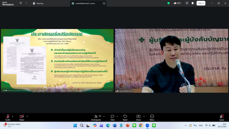 วันที่ 18 มีนาคม 2569 นายอดินันท์ บัวใจ รักษาการในตำแหน่งผู้อำนวยการศูนย์ถ่ายทอดเทคโนโลยีการสหกรณ์ที่ 14 พร้อมด้วยบุคลากรศูนย์ฯ เข้าร่วมโครงการอบรมทางไกล (conference) “เรื่องการป้องกันผลประโยชน์ทับซ้อน” โดยได้รับเกียรติจาก นายนิรันดร์ มูลธิดา อธิบดีกรมส่งเสริมสหกรณ์ เป็นประธานในพิธีเปิดโครงการ วัตถุประสงค์เพื่อให้ความรู้ ความเข้าใจ และสร้างความตระหนักค่านิยม จิตสำนึก และเสริมสร้างจริยธรรมแก่ข้าราชการ ลูกจ้างประจำ และพนักงานราชการ ทั้งส่วนกลางและส่วนภูมิภาค ถ่ายทอดสัญญาณผ่านระบบ Zoom Meetings ณ ห้องประชุม 126 ชั้น 1 อาคาร 1 เทเวศร์ กรมส่งเสริมสหกรณ์ กรุงเทพมหานคร